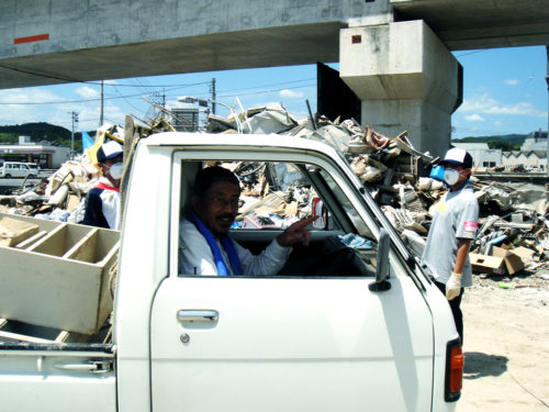 気が遠くなる再建。何年かかるでしょうか。ボランティアが先週くらいから有井地区だけでなく,東の箭田方面にもボラセンから午後3時まで来てくださるようになりました。
